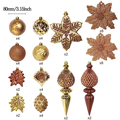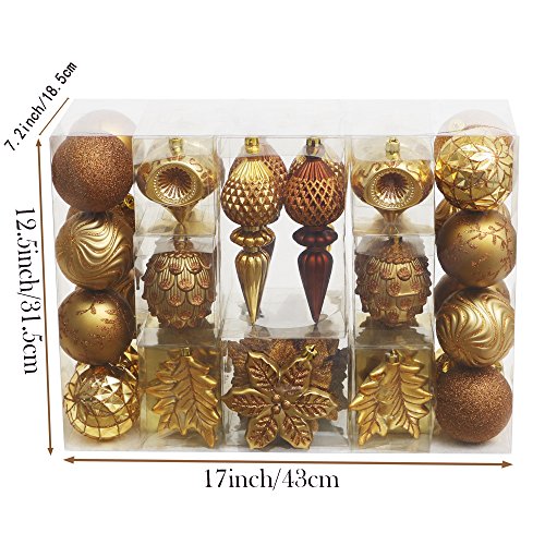 Valery Madelyn 50ct Woodland Shatterproof Christmas Ball Ornaments Decoration, 50 Pcs Metal Hooks Included, Themed with Tree Skirt(Not Included)