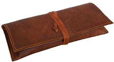 Gbag (T) Genuine Leather Stationery Pencil Pen Case Art Pouch Office Uni College Smart Everyday Vintage Unisex Brown T5