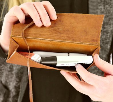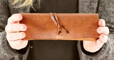 Stylish, distinct stationery case, with leather tie-strap closure Made from genuine, Fair Trade goatskin; outer and inner material: leather (100% leather)