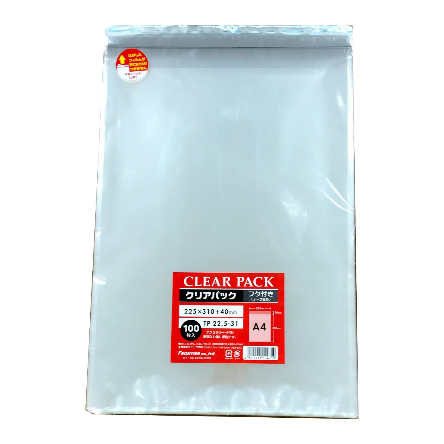 【サイズ】A4 ヨコ22.5×タテ31cm、フラップ部4cm 【厚さ】0.03m 【入数】100枚 【材質】ポリプロピレン