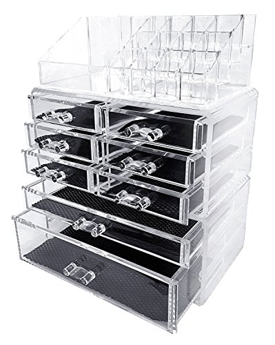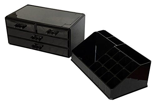 Approximate Makeup Cosmetic Organizer Set Dimension: 8 5/8''L x 5 3/8''W x 11 5/8'' H; 16 multi-size sections on the top and bottom 8 drawers: 6 small drawer, 2 large drawer.