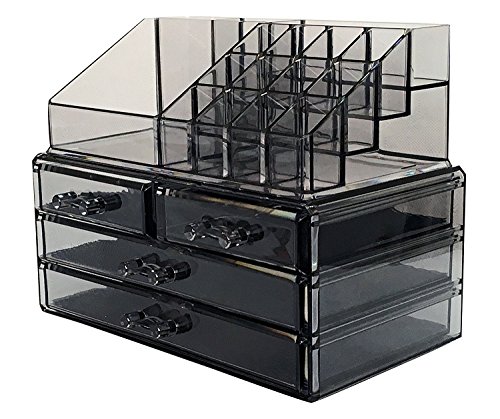 Sodynee Acrylic Makeup Cosmetic Organizer Storage Drawers Display Boxes Case, Three Pieces Set