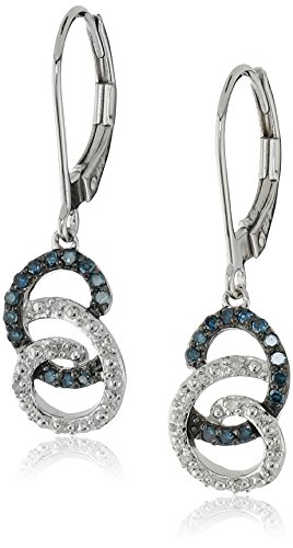 Sterling Silver Blue and White Diamond Swirl Earrings (1/6 cttw, I-J Color, I2-I3 Clarity)