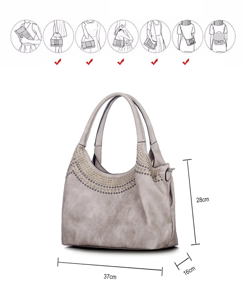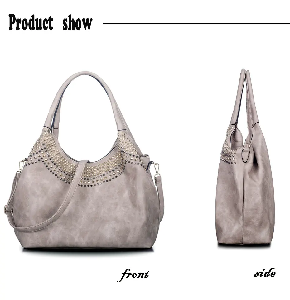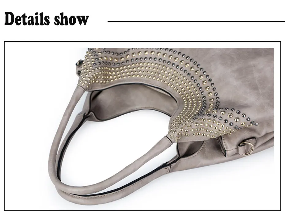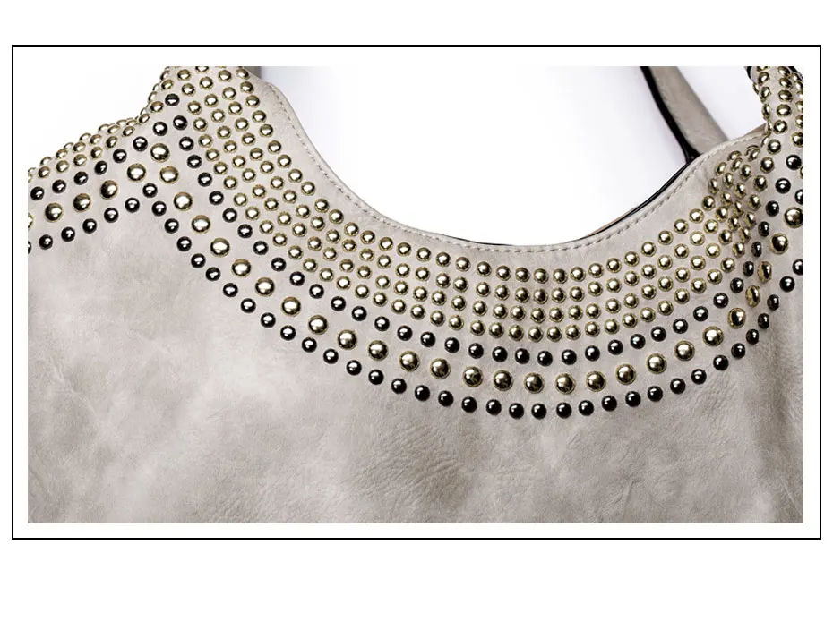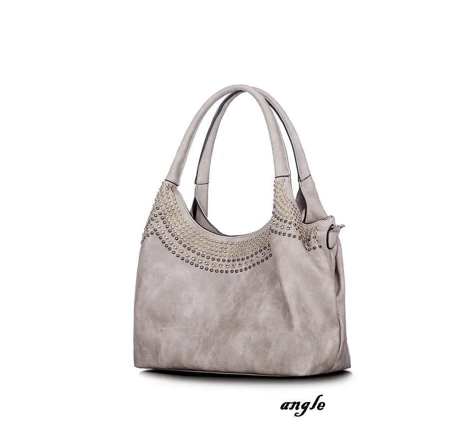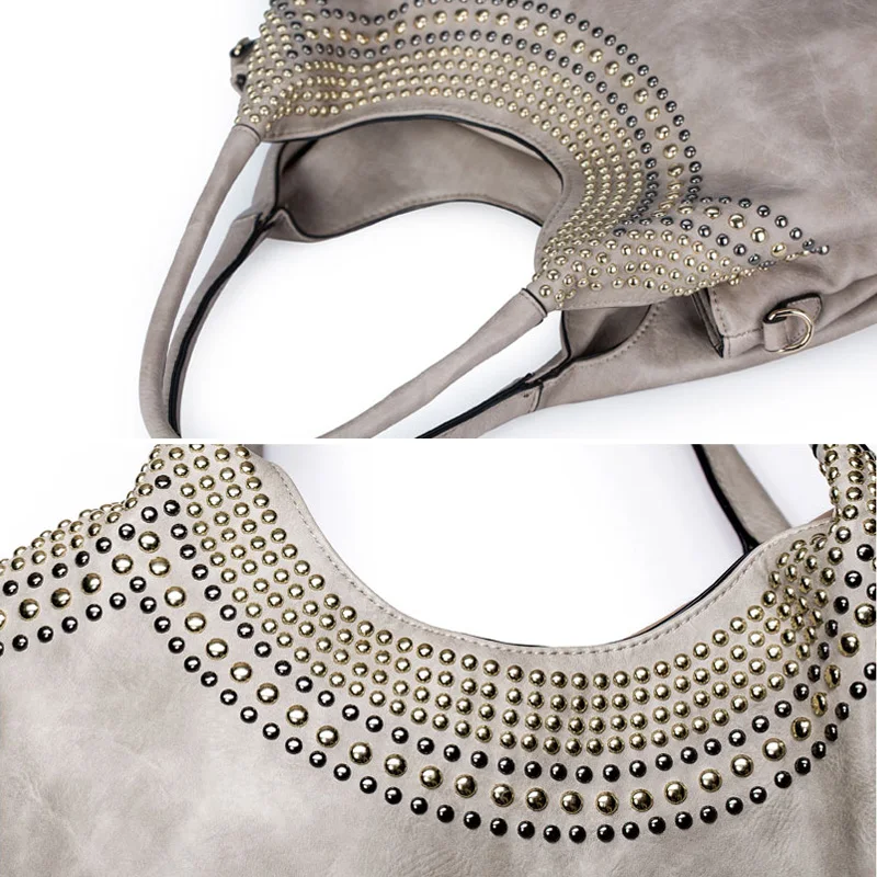 Feature:Rivets Beading Hobos PU Leather Handbag Shoulder Bag Tote Bag
