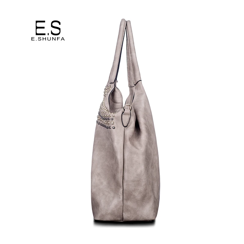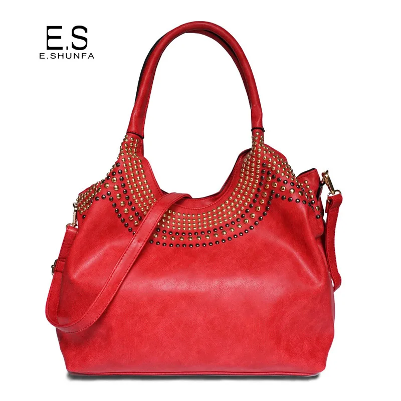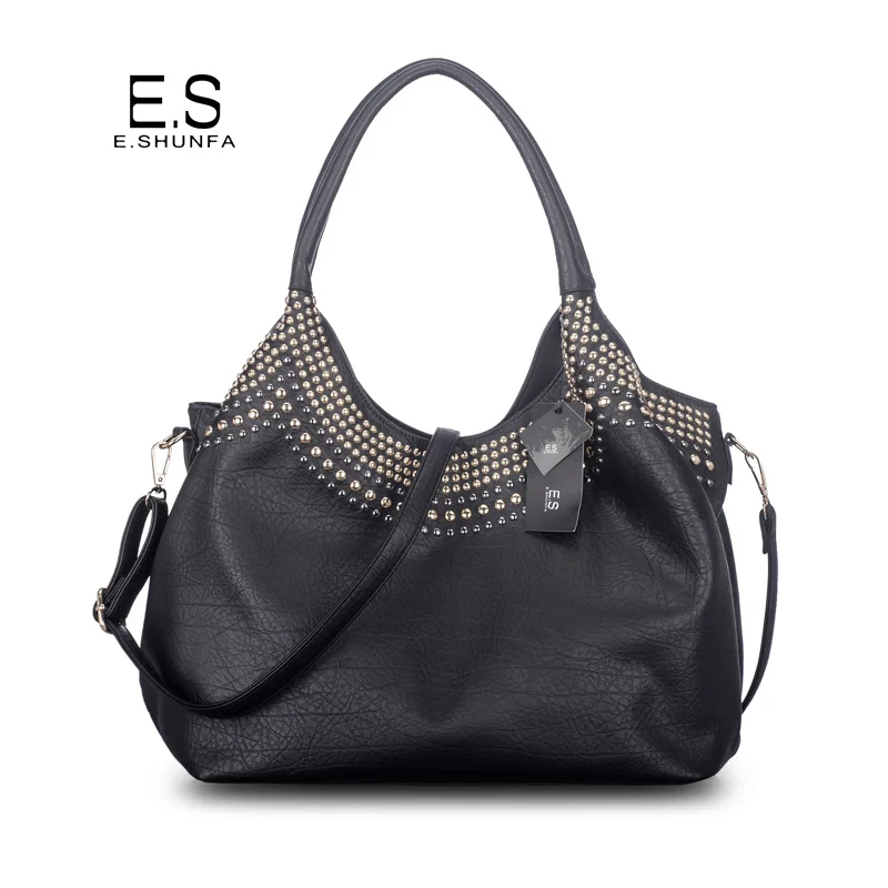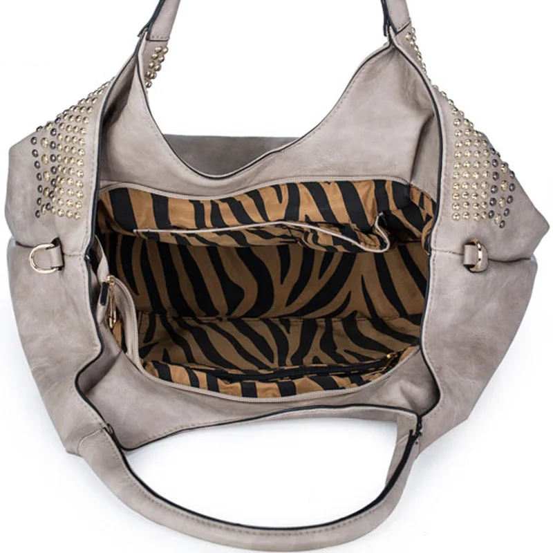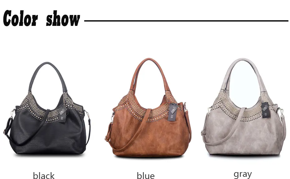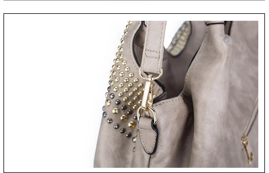 Feature:Rivets Beading Hobos PU Leather Handbag Shoulder Bag Tote Bag