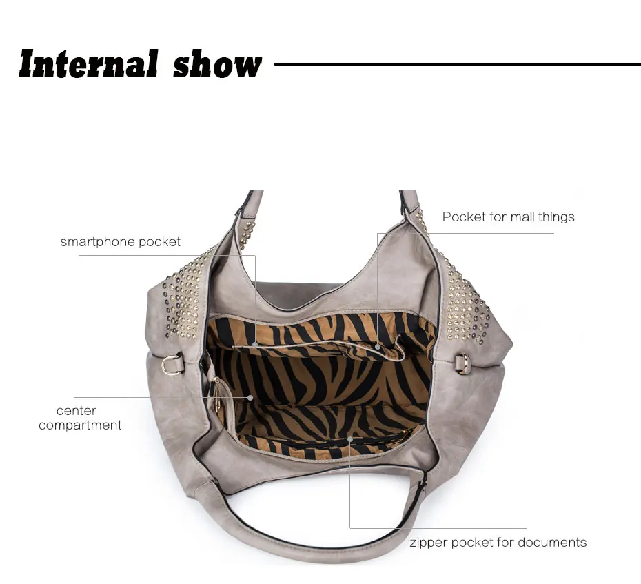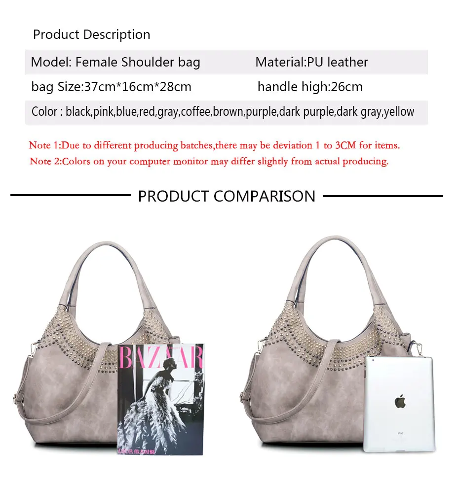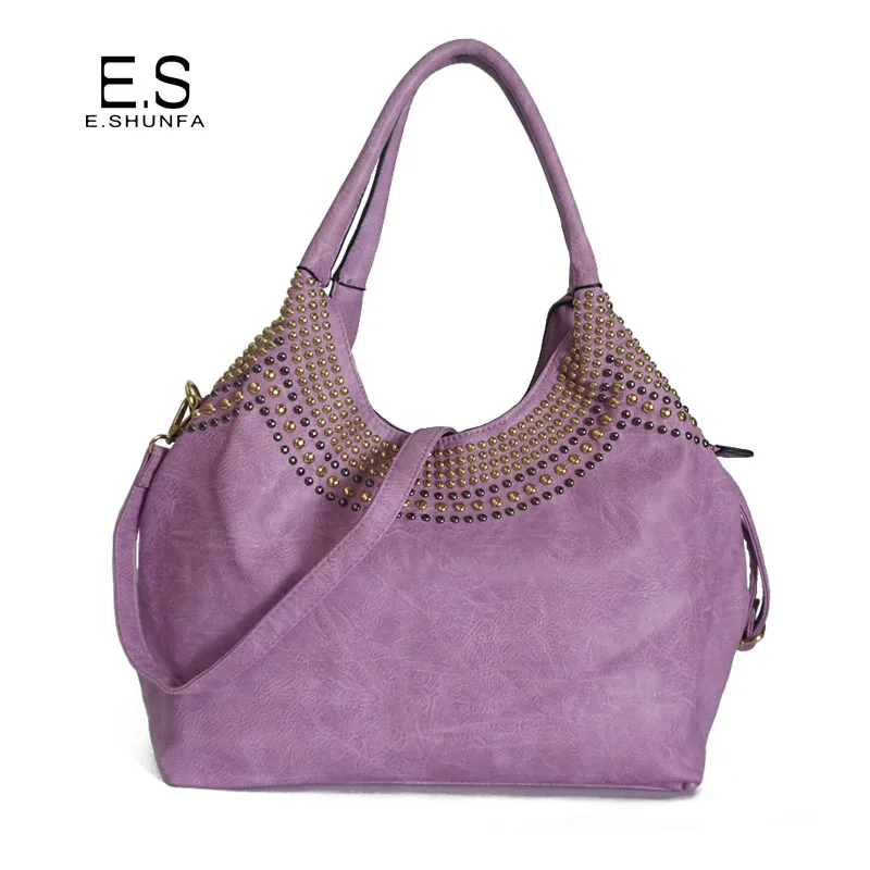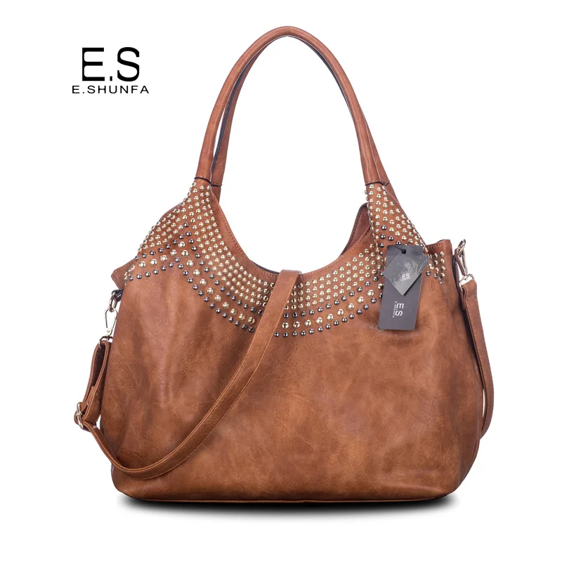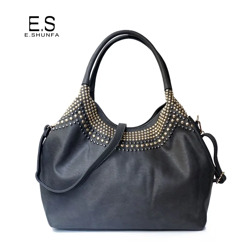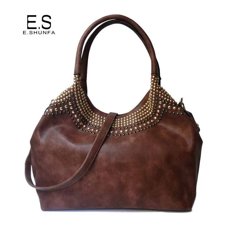 Feature:Rivets Beading Hobos PU Leather Handbag Shoulder Bag Tote Bag