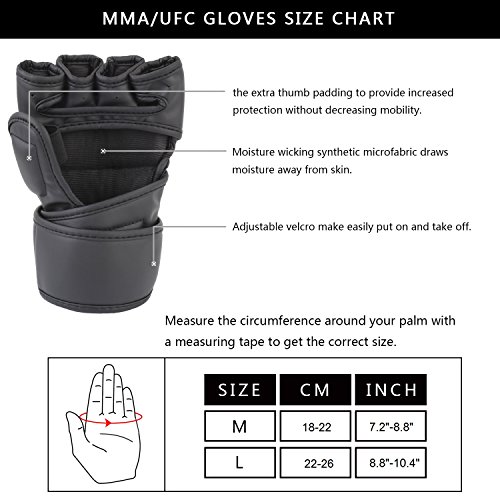BraceMaster's gloves for MMA/UFC This MMA/UFC gloves can well protect your thumb, fist, and wrist from punching and kicking With the good quality thick padding on the front, back and wrist, it is professional for? MMA, UFC, Sparring. Choose it, and make all the difference in your games. FEATURE: 1. High-quality PU leather material ensure for long-term use; 2. ergonomic Tri-Slab padding curves over knuckles to deliver efficient protection against shock-impact; 3. add the extra thumb padding to provide increased protection without decreasing mobility. 4. Two-layers of velcro design to strengthen the protection of the wrist. Material: Premium PU leather Suitable for: MMA, UFC, Sparring, training in boxing, cardio kickboxing, muay thai, fighting heavy bag, working outs, sanda, etc. BraceMaster's Guarantee: 90 Day guarantee for unconditional refund. Order now without doubt. 0 |