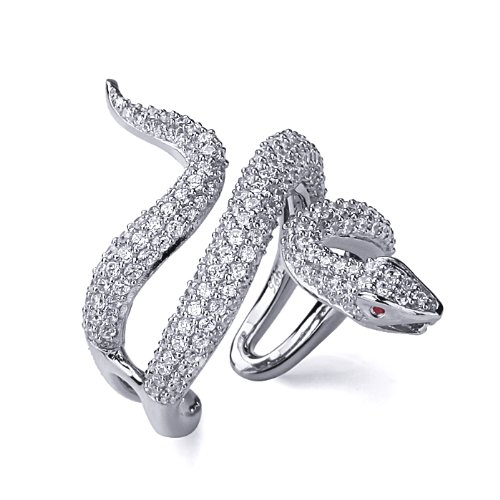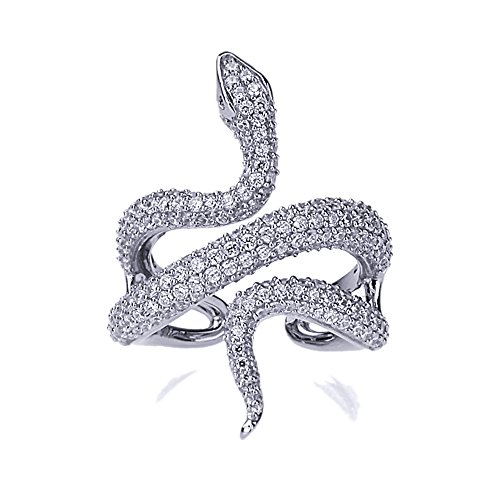 -. Title : Rhodium Plated Sterling Silver Snake Design CZ Pave Setting Right Hand Ring 34mm