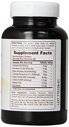 100% Natural Digestive Enzyme Helps With Inefficient Digestion & Contains Chlorophyll & Peppermint to Freshen Breath and Reduce Bad Taste.