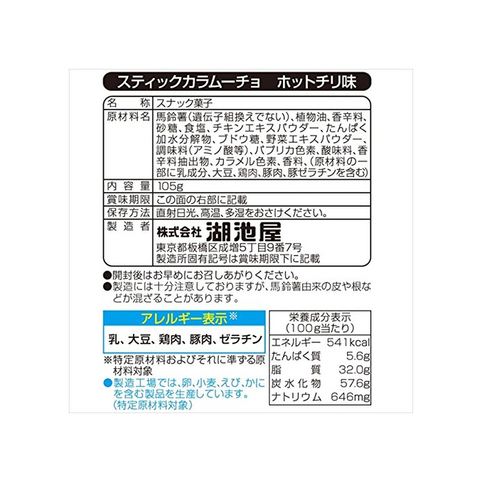 원본상품명: 湖池屋 スティックカラム?チョ ホットチリ味 105g×12袋