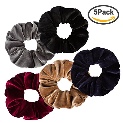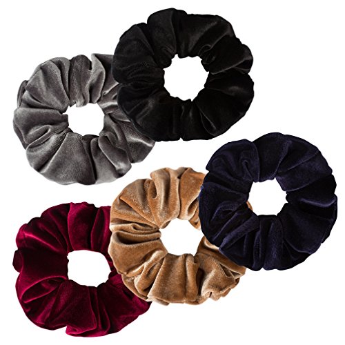 -. Title : Jaciya 5 Pack Large Velvet Scrunchies 6.3 Inches Hair Elastics Scrunchy Bobbles Soft Elegant Elastic Hair Bands Hair Ties, 5 Colors