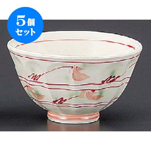 원본상품명: 5個セット 飯碗(磁器) 紅彩花削り茶碗 [122 x 70mm] 土物 和食器 料亭 旅館 ?食店 業務用