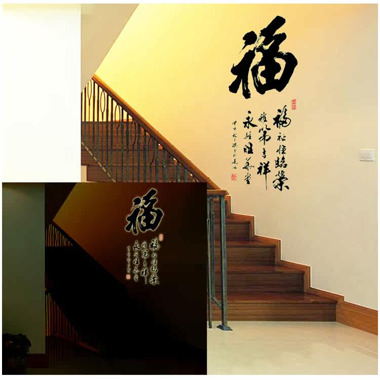 福字画墙贴客厅卧室墙贴画书房床头电视背景墙贴纸自粘可移除壁纸