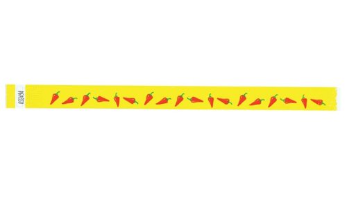 -. Title : Tyvek Wristbands - 3/4 Inch -Chili Peppers Patterns - Yellow Color - 500 Bands Per Box