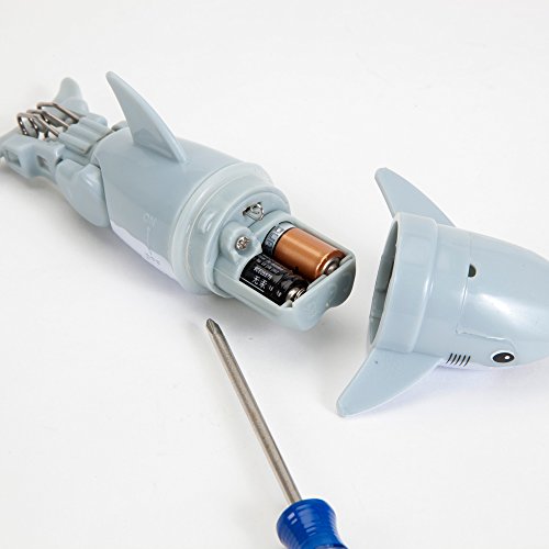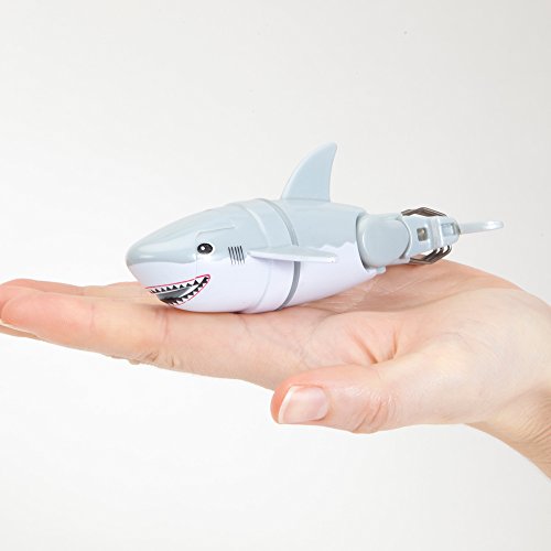 -. Binding : Toy -. Brand : Bits and Pieces -. EAN : 8139740104630 -. Feature : This little shark will keep kids entertained for hours. / Place in a fishbowl, sink or tub and watch as it dips, dives and does underwater stunts. / Adjust the tail to change the direction of the swimming action. / Measures 5" long. / Requires 2 AAA batteries, not included. Ages 3+. -. IsAdultProduct : 0 -. Label : Melville Direct -. Manufacturer : Melville Direct -. MPN : 43648 -. PartNumber : 43648 -. ProductGroup : Toy -. ProductTypeName : TOYS_AND_GAMES -. Publisher : Melville Direct -. Studio : Melville Direct -. Title : Bits and Pieces - Children's Robotic Swimming Shark - Diving Underwater Bathtub or Pool Toy for Kids