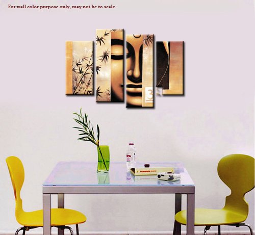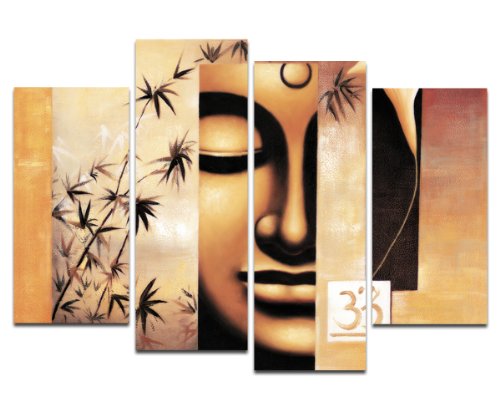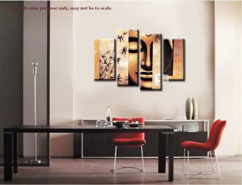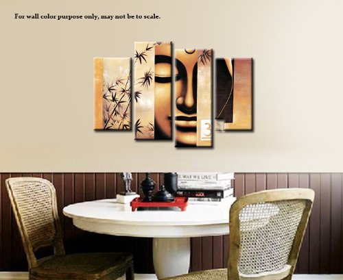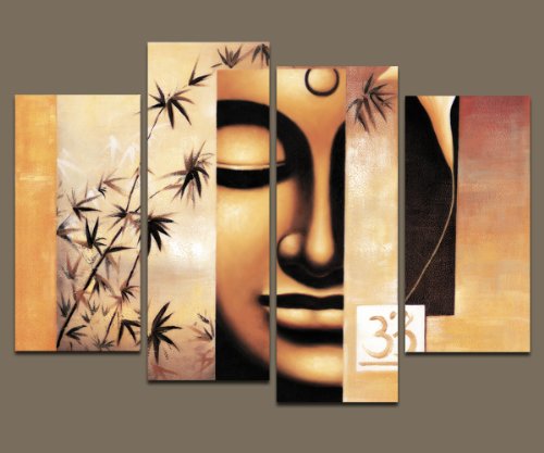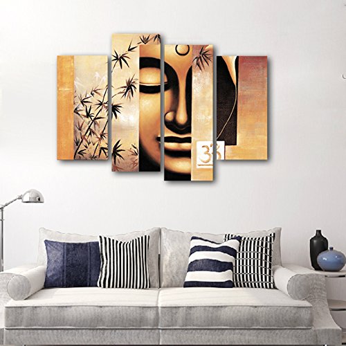 -. Title : Wieco Art - Large Modern 4 Panels Stretched and Framed Giclee Canvas Prints Artwork Buddha Abstract Oil Paintings Reproduction on Canvas Wall Art Ready to Hang for Living Room Home Decorations L
