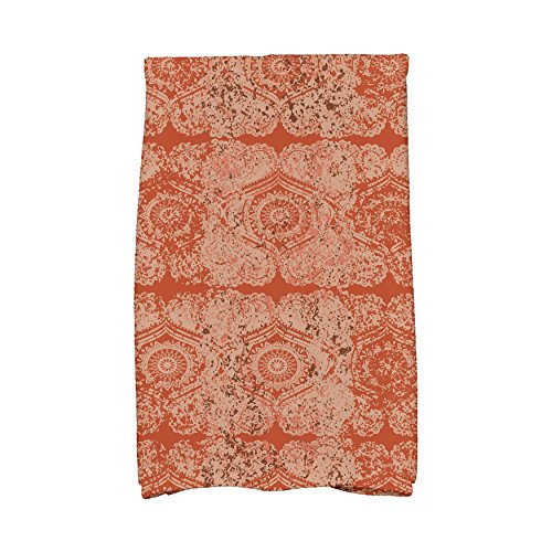 E by design KTGN725OR16 Patina Geometric Print Kitchen Towel, 16" x 25", Orange/Rust