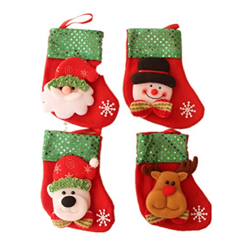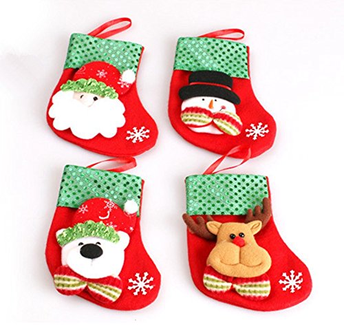 WONGYEE 4Pcs Sequins Christmas Sock Decorations Snowflake Tableware Holders Candy Pouch Bag