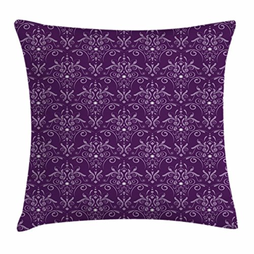 (Ambesonne)/Bedding Bath/Bedding/DIRECT FROM USA/Eggplant Throw Pillow Cushion Cover by Ambesonne, Damask Pattern with Symmetrical Abstract Leav...