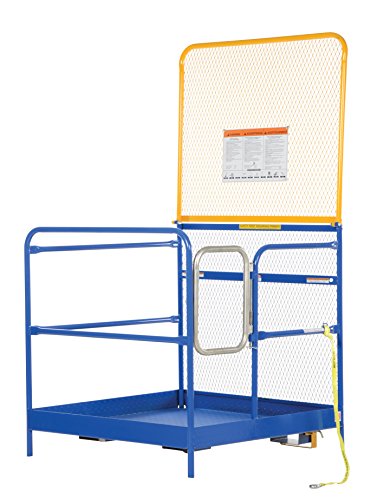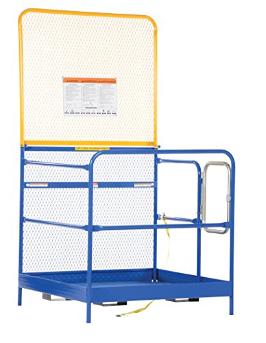 -. Feature : Patented automatic locking gate with extra chain lock ensures maximum safety / Fork truck tine lock secures work platform to forks of fork truck / Tread plate floor provides a safe non-slip grip / Dual handrails on three sides ensures worker safety