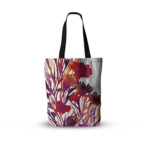 KESS InHouse Ebi Emporium "Pocket Full Of Posies Red" Maroon Purple Everything Tote Bag, 18" x 18", Multicolor