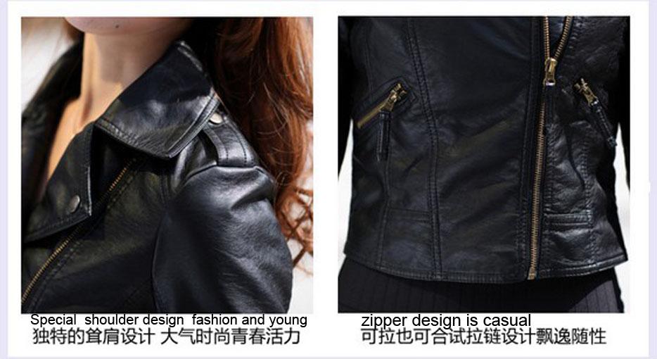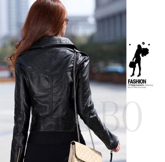 Women Fashion Vintage Slim Biker Motorcycle PU Soft Leather Zipper Jacket Coat