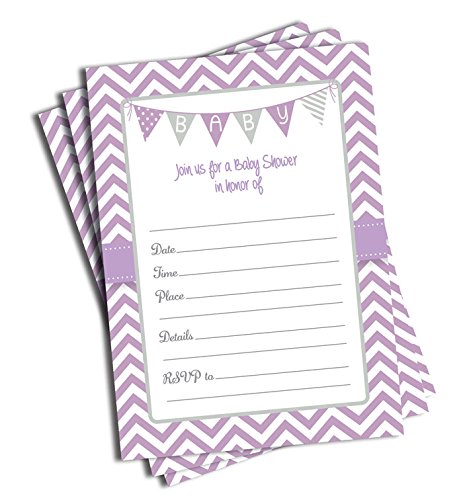 [Product Information]- 50 Fill-in-the-blank Purple Chevron Baby Shower Invitations and 50 Envelopes