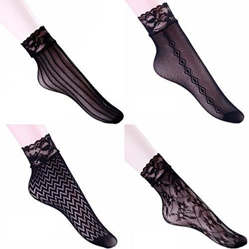 -. Title : FULLRON 4 Pairs Knee High Trouser Socks, Fishnet Stockings