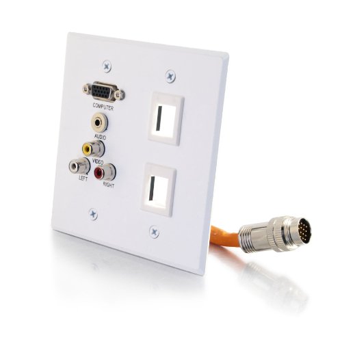 C2G/Cables to Go 60037 RapidRun Double Gang Integrated VGA (HD15) + 3.5mm + Composite Video + Stereo Audio + 2 Keystones Wall Plate