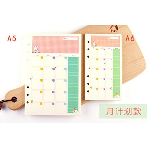 DadaCrafts(TM) A5 Month Plan Planner Organizer Refills Papers for 6-Rings Binder Notebook, 45 Sheets/90 Pages