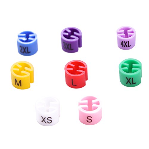 -. Feature : Specification:Quantity:100PCS;Material: Plastic;Height:0.97cm(0.38in), Diameter: 1.25cm(0.5in), Weight: 0.6 gram/piece / Feature and function::Easier for your customers to find their size quickly by looking at the top of the hanger rather than looking for size tags on the garment / Package:9 kinds of packing with different color,you can choose the size marker you need for your garment / Easy to clip on ,convenient for staff to have a better overview of garments available and fill in missing sizes / Free storage box for size markers and it keep your unused size markers organised