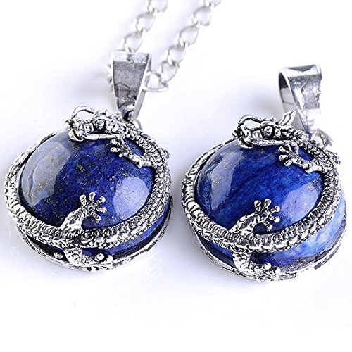 - Title : Top Plaza 1pc Blue Lapis Lazuli Gemstone Dangle Pendant Dragon Around Coin Fit Necklace