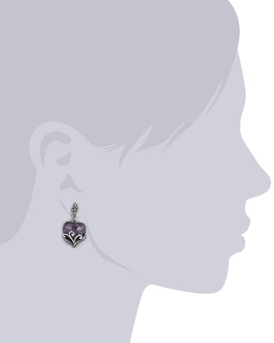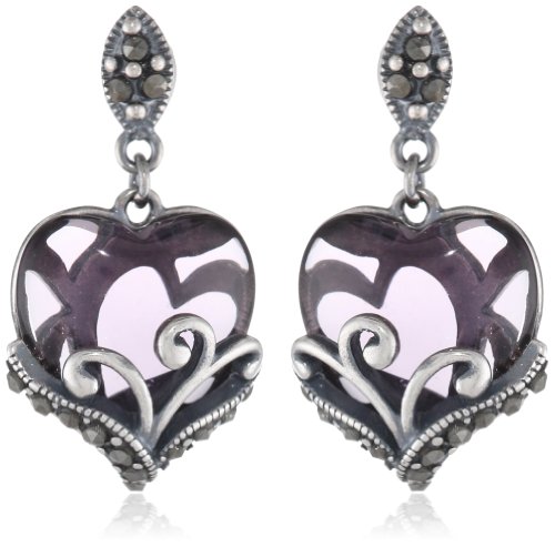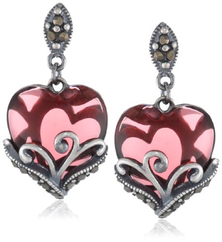 -. Feature : Sterling silver drop earrings featuring colored heart-shaped drops surrounded by oxidized marcasite / Imported