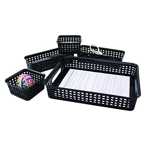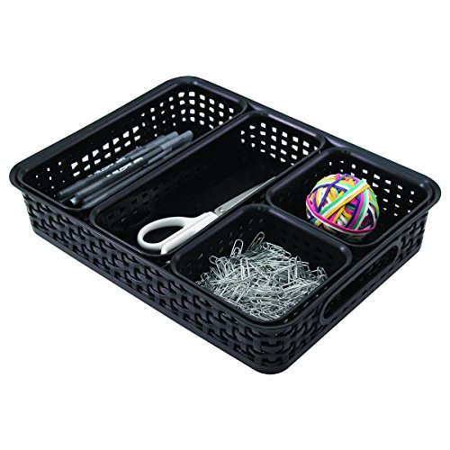 Advantus Plastic Weave Desk Organization Bins, Black, Pack of 5 (37530)
