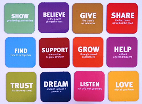 HIGH QUALITY MAGNETS - 12 Colorful magnets, size 5x5 Cm each magnet has a different quote with unique messages and words meant to remind you every day how much family is the most important thing in this world. The best original family gift.