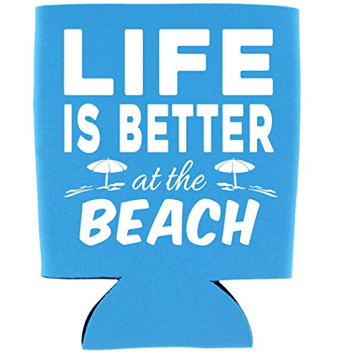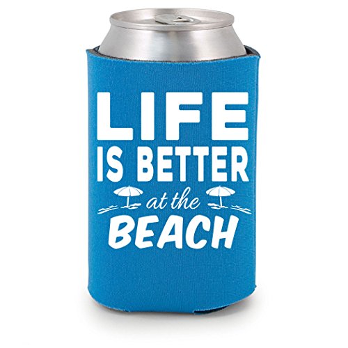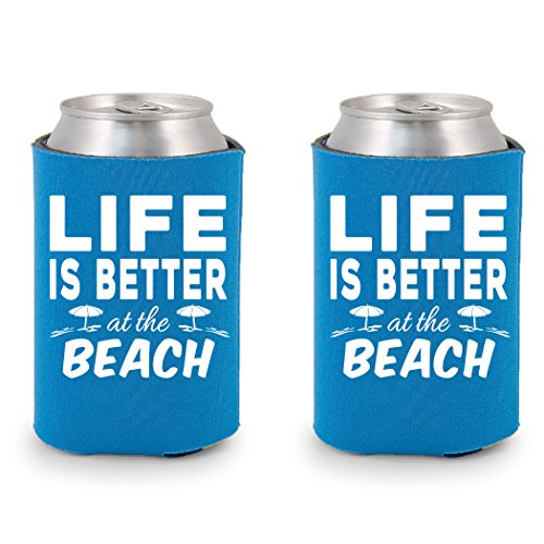 Shop4Ever Life is Better at the Beach Can Coolie Summer Drink Coolers Coolies Neon Blue - 2 Pack