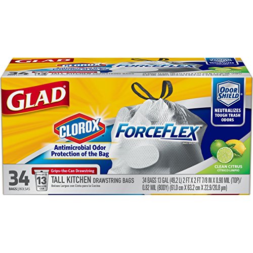 Glad ForceFlex Tall Kitchen Antimicrobial Drawstring Trash Bags - Unscented - 13 Gallon - 34 Count