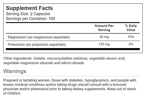 What is Vitacost Potassium & Magnesium? Vitacost Potassium & Magnesium combines two essential minerals in one easy-to-take supplement. How do potassium and magnesium support health?Magnesium is needed for more than 300 biochemical reactions in the body, including supporting normal muscle and nerve function, heart rhythm and healthy bones.*Magnesium is involved in energy metabolism and protein synthesis.*Scientific evidence indicates magnesium influences the balance between extra- and intracellular potassium.*Potassium works with sodium to help regulate fluids in cells and to support a healthy acid/alkaline balance in the body.*Supports cardiovascular health.*Important for healthy bones.*Why choose Vitacost Potassium & Magnesium?Many people do not obtain adequate amounts of magnesium in their diets. This supplement provides an easy-to-take source. Features the aspartate form of both magnesium and potassium, which allows direct absorption through cell membranes.*Contains 200 capsules per bottlean incredible value!About VitacostAll Vitacost products are laboratory tested to meet FDA standards for identity, purity and composition. All products are tested for heavy metals, microbiology and contaminants. Vitacost products are produced in a NSF Certified facility. Freshness is guaranteed. * These statements have not been evaluated by the Food and Drug Administration. This product is not intended to diagnose, treat, cure or prevent any disease.Feature