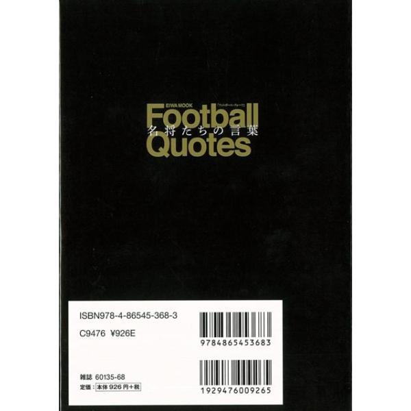 【商品基本情報】 商品名称:Football Quotes 名将たちの言葉 著者/出版社:三和 直樹/三和 直樹 初版発行日:2016/10/15 サイズ:B6判 ページ数:159 ISBN/JAN:9784865453683/4528189531888
