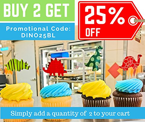 Bonitolife Assorted Dinosaur Cupcake Toppers with Bonus Tips, Recipes and Coloring Pages PDF - For Arts & Crafts, Party Supply Favors, Decorations, Birthdays, and Celebrations - Set of 24