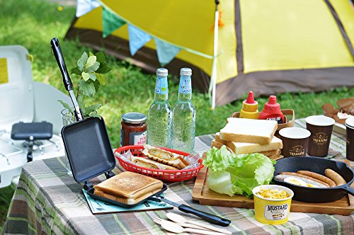 Insert your sandwich for a hot one Use the hot sandwich maker for breakfast, snacks, or lunch Great for camping and the outdoors Hot sandwich maker for direct grilling Enjoy the toasty taste from fire Fluorine Resin Coat Fluorine coat helps prevent sticking and makes cleanup easierFeature