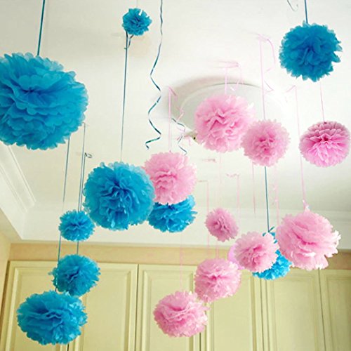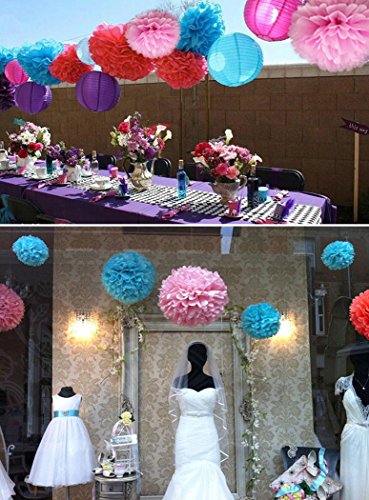 Tissue Paper Pom Poms, Tronking Paper Pom Poms 18 Pcs of 14, 12, 10 Inch 6 Colors Paper Pom Poms Decorations Kits for Birthday, Wedding, Party, Home Decoration