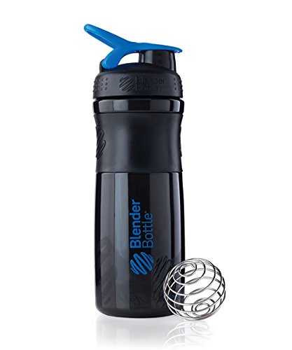 BlenderBottle SportMixer Tritan Grip Shaker Bottle, Black/Blue, 28-Ounce