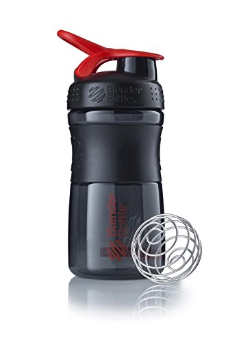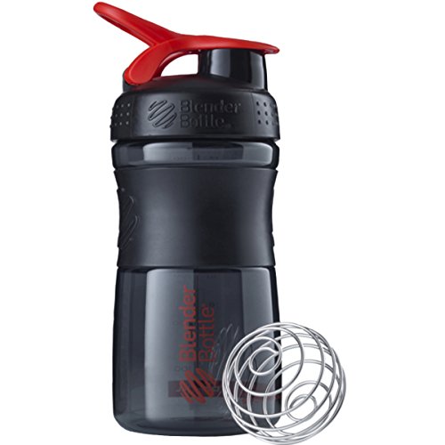 BlenderBottle SportMixer Tritan Grip Shaker Bottle, Black/Red, 20-Ounce