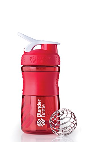 BlenderBottle SportMixer Tritan Grip Shaker Bottle, Red/White, 20-Ounce