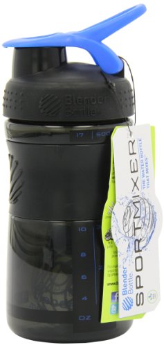 BlenderBottle SportMixer Tritan Grip Shaker Bottle, Black/Blue, 20-Ounce