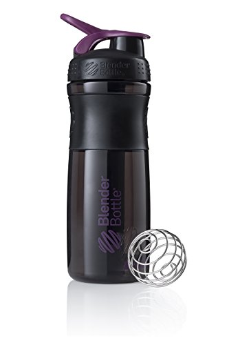 BlenderBottle SportMixer Tritan Grip Shaker Bottle, Transparent Black/Plum, 28-Ounce