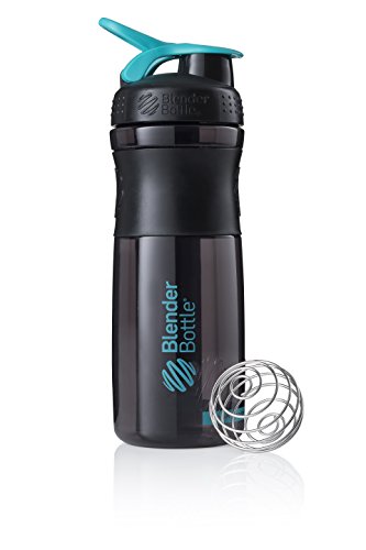 BlenderBottle SportMixer Tritan Grip Shaker Bottle, Transparent Black/Teal, 28-Ounce