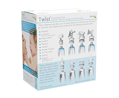 Using these Direct-Pump adapters, Kiinde Twist Pouch breast milk storage pouches twist-lock onto pumps from ALL major brands, for leak-free, transfer-free pumping, directly into the pouch