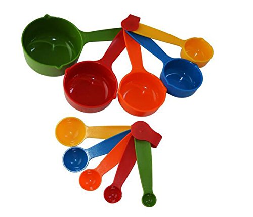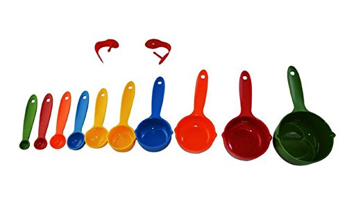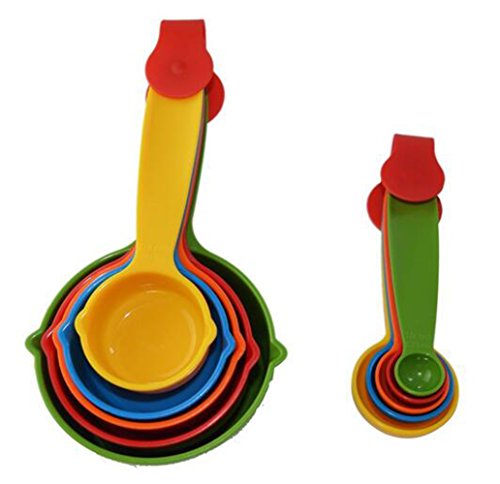 Tebery 10 Piece Good Grips Plastic Measuring Cups and Spoons - Mixed Colors
